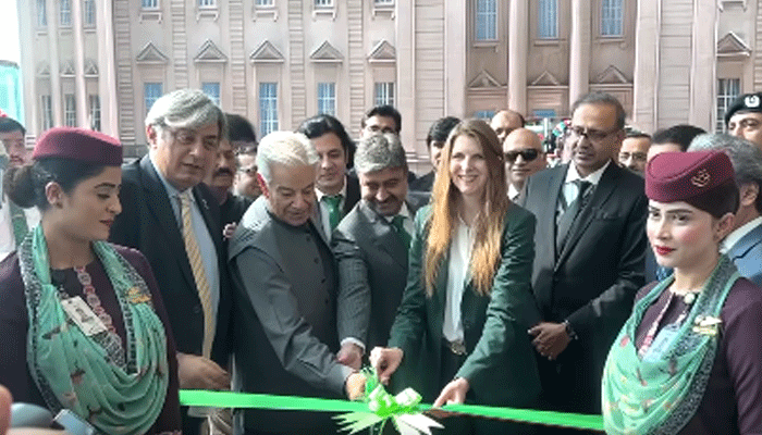 اسلام آباد ایئرپورٹ پر اس موقع پر ایک شاندار تقریب منعقد کی گئی جس میں وزیر دفاع خواجہ آصف، برطانوی ہائی کمشنر جین میرٹ، ایوی ایشن حکام اور پی آئی اے انتظامیہ سمیت دیگر اہم شخصیات نے شرکت کی۔