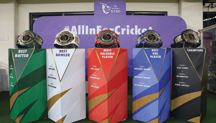 ڈی پی ورلڈ آئی ایل ٹی 20 کے دستخطی بیلٹس نے کھلاڑیوں میں نئی دوڑ چھیڑ دی
