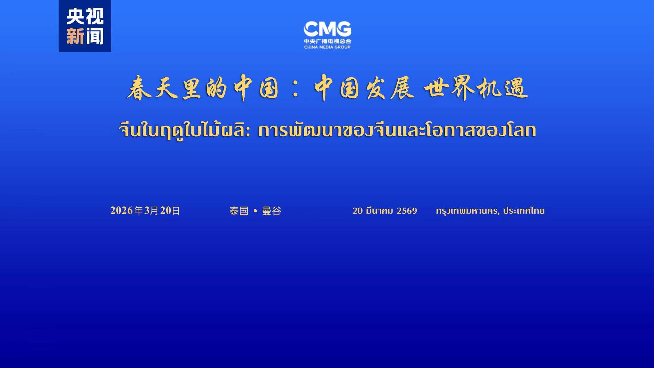 "چائنا ان اسپرنگ ٹائم:دنیا کے لیے چین کے ترقیاتی مواقع ” کے عنوان سے عالمی مکالمے کا تھائی لینڈ خصوصی سیشن بینکاک میں منعقد ہوا۔ کمیونسٹ پارٹی آف چائنا کی مرکزی کمیٹی کے شعبہ تشہیر کے نائب سربراہ اور چائنا میڈیا گروپ کے صدر شن ہائی شیونگ نے اس مکالمے سے ویڈیو خطاب کیا۔ چین اور تھائی لینڈ کی سیاسی، کاروباری، تعلیمی اور میڈیا کے شعبے کی شخصیات سمیت تقریباً دو سو شرکاء نے اس تقریب میں شرکت کی۔